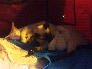 Kävin eilen tapaamassa Gislomin siamilaisia. Pesässä emot hoivasivat pentuja suurella antaumuksella antamatta minkään häiritä. Lapset olivat jänteviä ja reippaita kaikki. Ryppypyllyt tiirattiin monenmonta kertaa ja minun näkimilläni pesässä olisi neljä poikaa ja yksi mutkahäntäinen Siamin prinsessa. Täydellisiä kaikki, tietenkin!